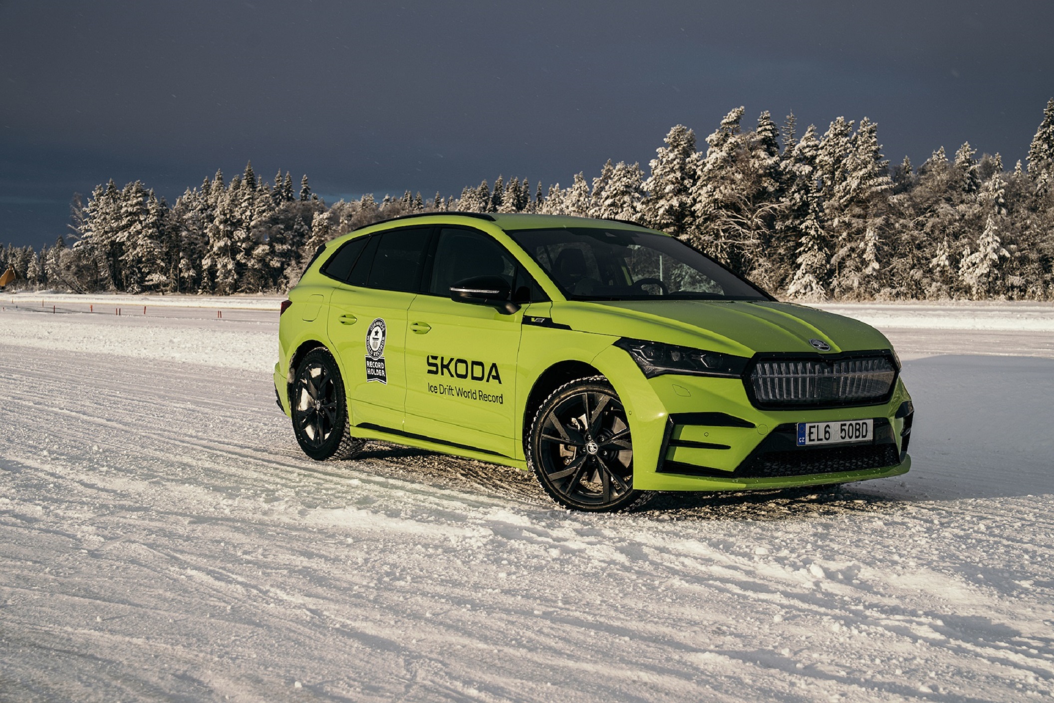 Η Škoda σημείωσε δύο επίσημα παγκόσμια ρεκόρ drift στον πάγο με το Enyaq RS iV SUV, το δεύτερο αμιγώς ηλεκτρικό σπορ μοντέλο της μάρκας. Τα ρεκόρ για το «Μεγαλύτερο συνεχόμενο drift οχήματος στον πάγο» και το «Μεγαλύτερο συνεχόμενο drift οχήματος στον πάγο με ηλεκτρικό αυτοκίνητο», επαληθεύτηκαν από την GUINNESS WORLD RECORDS. Τα ρεκόρ επιτεύχθηκαν από τον δημοσιογράφο αυτοκινήτου Richard Meaden σε μια κυκλική διαδρομή περιφέρειας 188,496 μέτρων, πάνω στην παγωμένη λίμνη Stortjärnen κοντά στο Östersund της Σουηδίας, την Πέμπτη 19 Ιανουαρίου 2023.