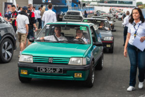 Τριάντα 205 GTi, με οδηγούς τους ίδιους τους ιδιοκτήτες τους – όλοι πιστοί φίλοι της μάρκας – συνόδευσαν το E-208 GTi στον πρώτο του γύρο στην πίστα των 24 Ώρων του Le Mans, σε μια εντυπωσιακή παρέλαση που έκλεψε την παράσταση.